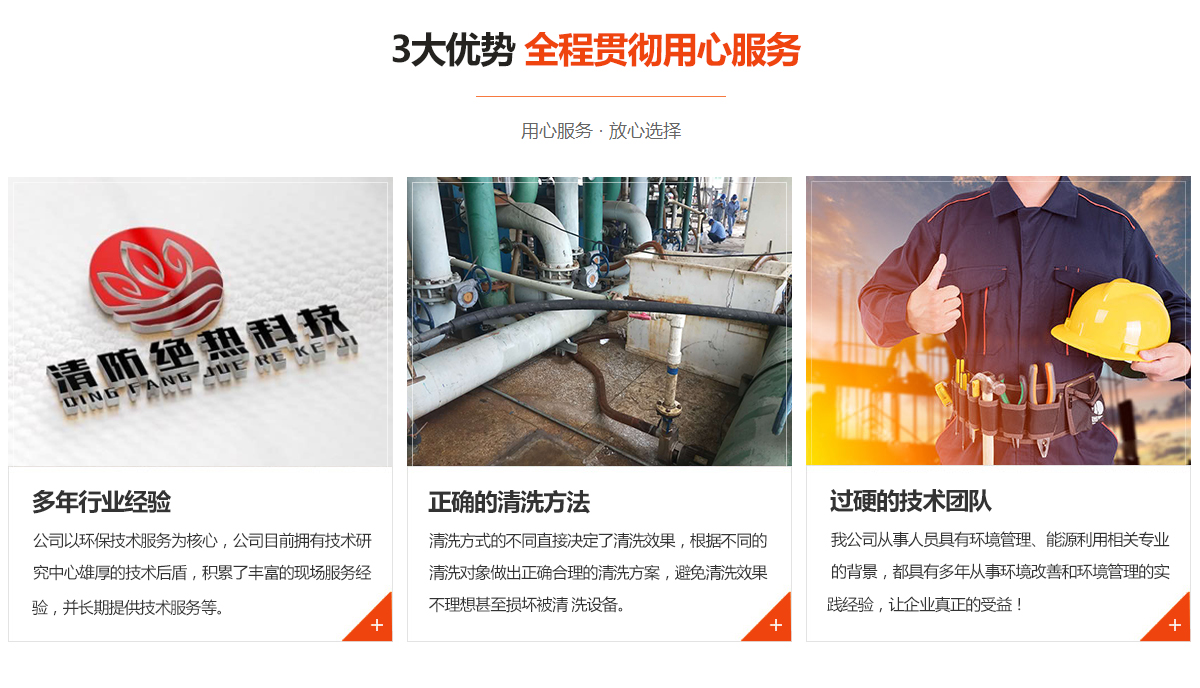 專業(yè)從事化學(xué)清洗、物理清洗各種型號(hào)換熱器、鍋爐、管線、維修,污水處理設(shè)施的修復(fù)、管理、經(jīng)營、技術(shù)咨詢及配套服務(wù);環(huán)境技術(shù)開發(fā);防腐、保溫等領(lǐng)域的工程施工、技術(shù)咨詢等;目前主要合作單位以煤化工、發(fā)電廠、治煉廠為主;公司目前擁有技術(shù)研究中心雄厚的技術(shù)后盾,積累了豐富的現(xiàn)場服務(wù)經(jīng)驗(yàn),并長期提供技術(shù)服務(wù)等。